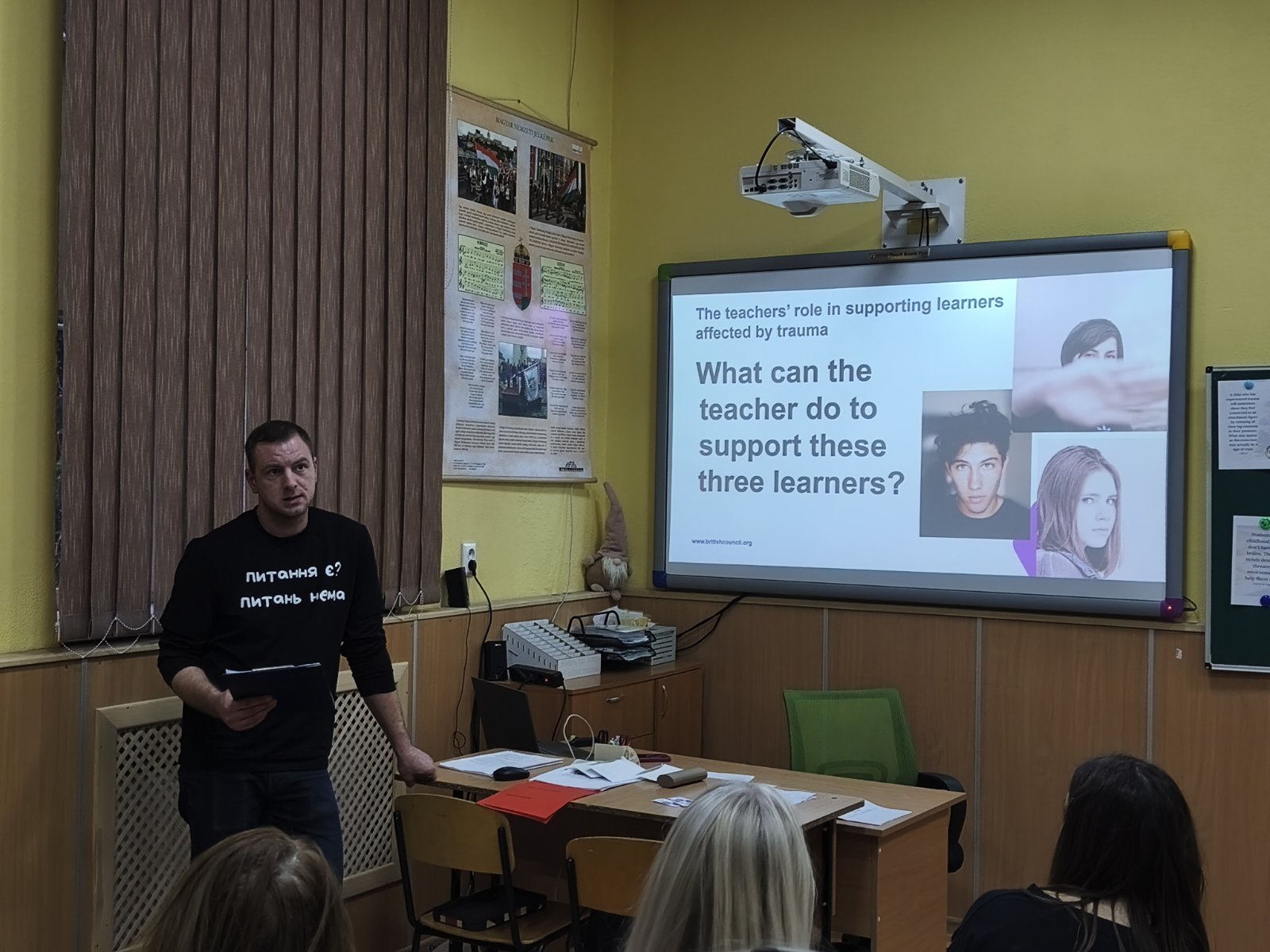 13 лютого у нашому ліцеї відбулося засідання професійної спільноти вчителів англійської мови на тему «Травма та її вплив на навчальний процес». Захід підготували й провели вчителі англійської мови ліцею на основі змістовної презентації, присвяченої розумінню травми, її впливу на навчання та ролі педагога у створенні безпечного освітнього середовища.