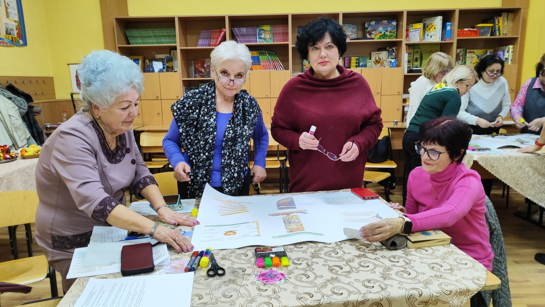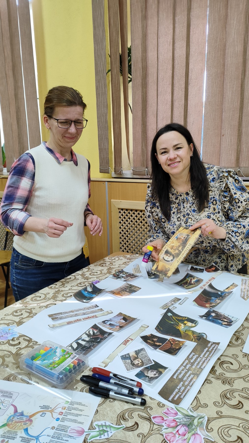 Далі учителька Мирослава Резнік поділилася досвідом застосування ментальних карт на уроках зарубіжної літератури. Педагогиня показала, як за допомогою цього інструмента можна візуалізувати сюжетні лінії, характери персонажів, тематичні й ідейні зв’язки твору, що значно полегшує сприйняття складного літературного матеріалу та активізує пізнавальну діяльність учнів. А потім запропонувала учасникам засідання виконати практичне завдання. Педагоги об’єдналися в невеликі групи та спробували створити власні ментальні карти, застосовуючи запропоновану методику. Робота проходила активно й творчо: учителі наполегливо добирали ключові поняття, будували асоціативні зв’язки, структурували інформацію у візуальній формі. Після завершення роботи кожна група презентувала створену ментальну карту, пояснюючи логіку її побудови та можливості використання такого інструмента на уроках зарубіжної літератури.