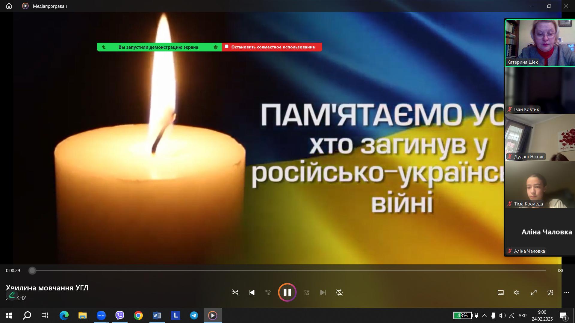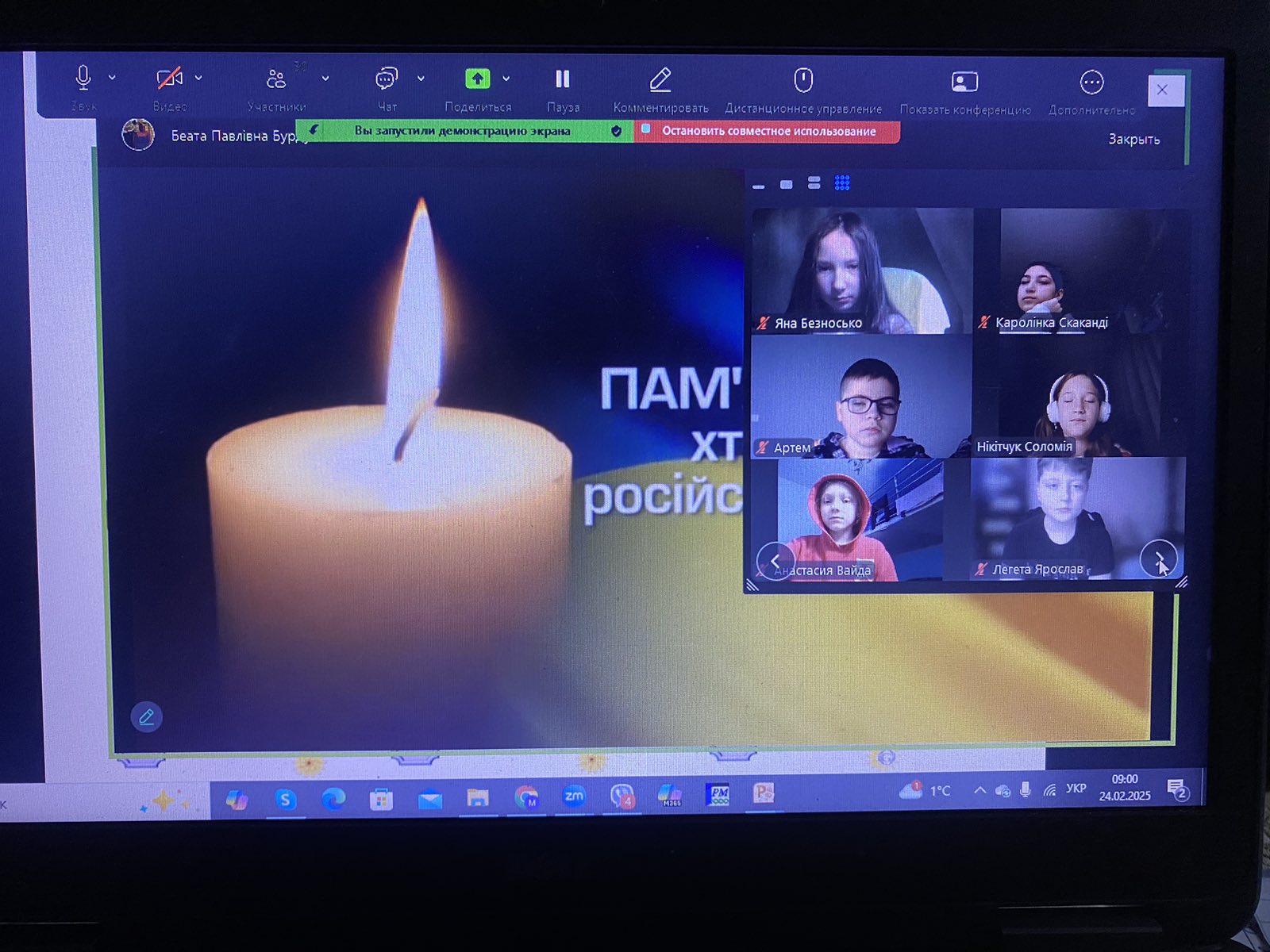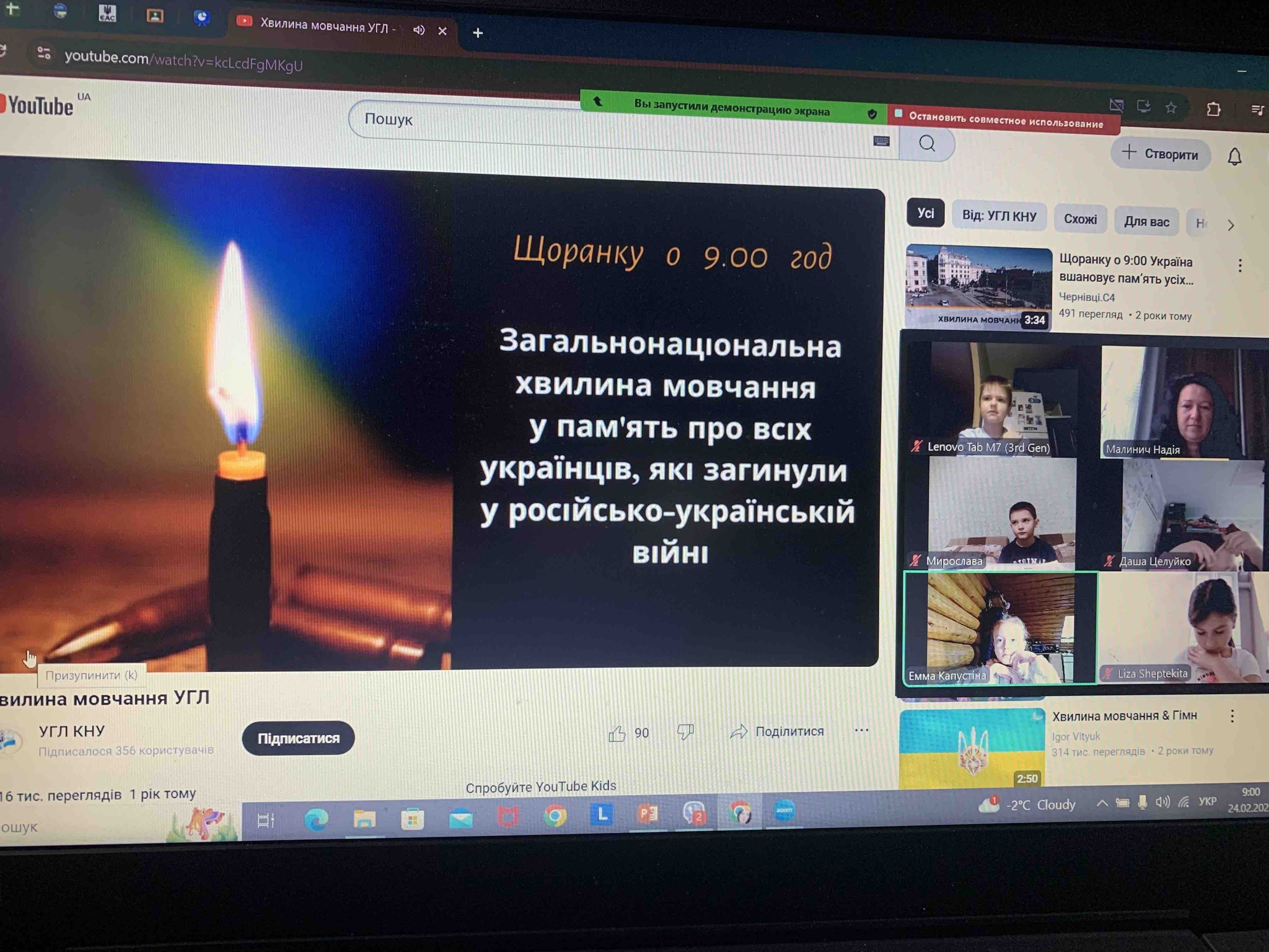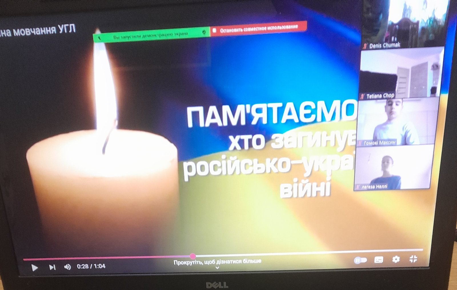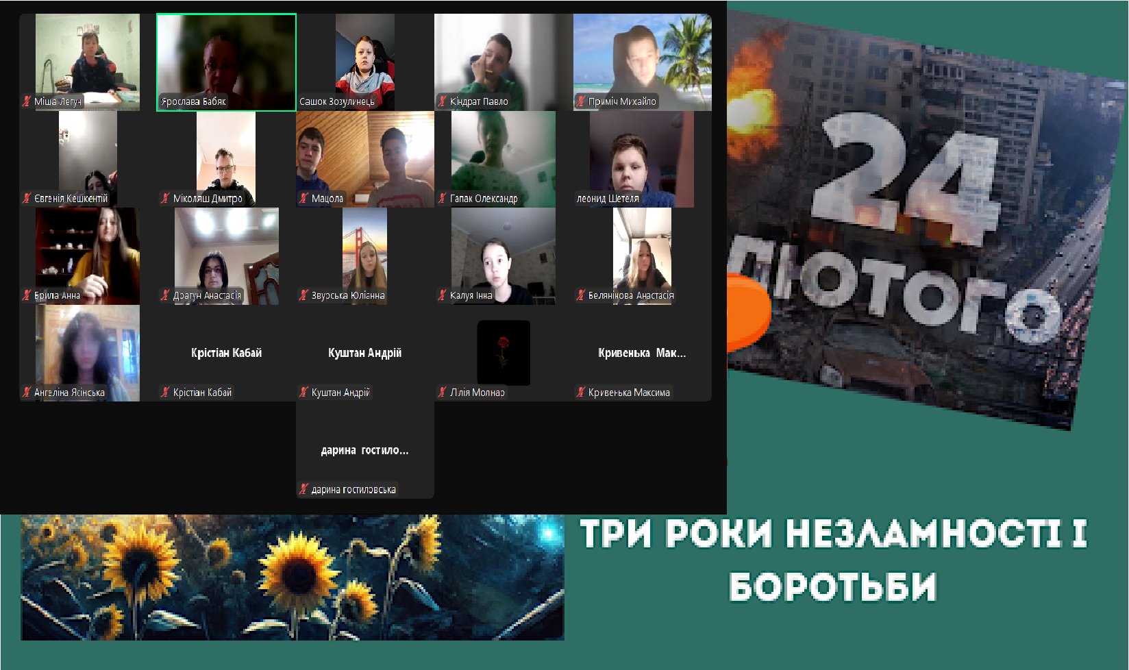 О 9:00 всі уроки завмерли в тиші всього на 1 хвилину, щоб вшанувати пам’ять загиблих у цій війні, яку ми не хотіли і у ХХІ столітті ніхто не чекав…..