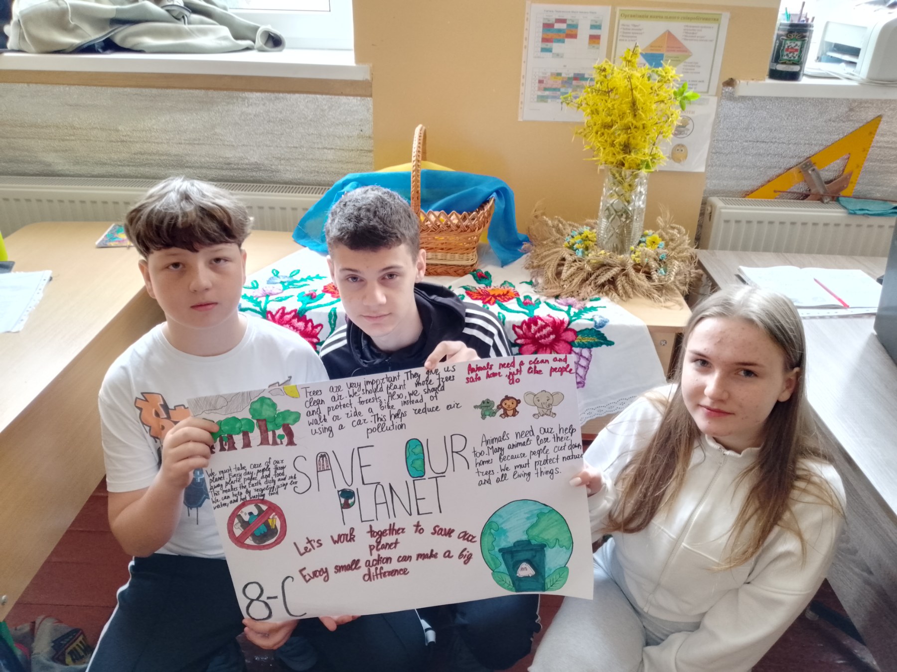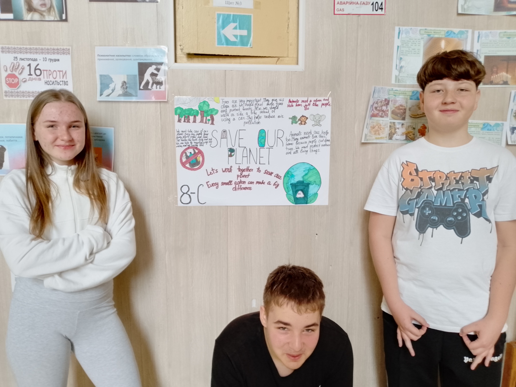 До Всесвітнього дня Землі учні 8-В класу на уроці англійської мови (вчитель Проц А.М.) оформили постер про важливість захисту нашої планети