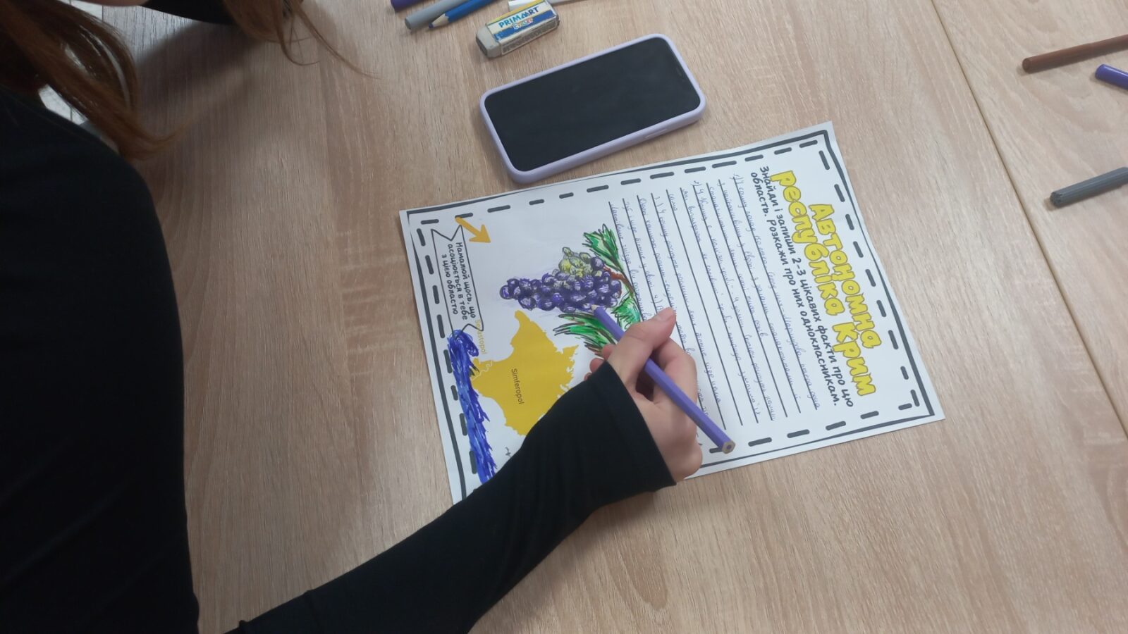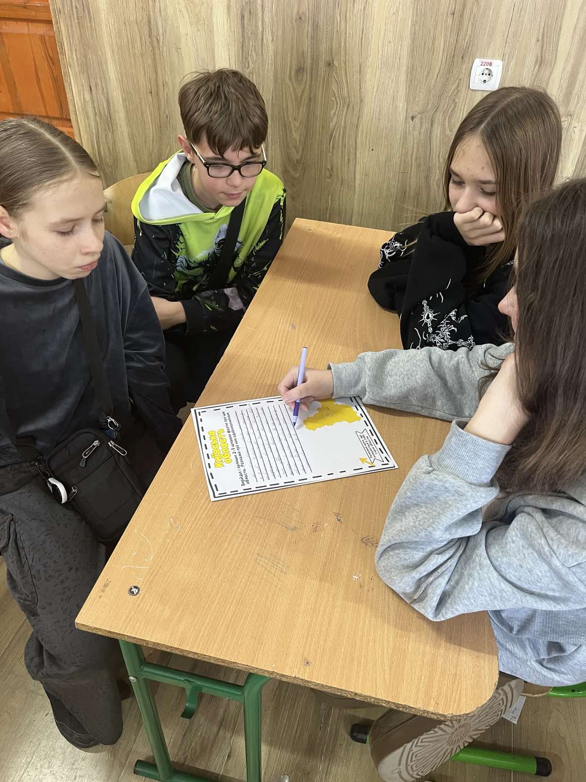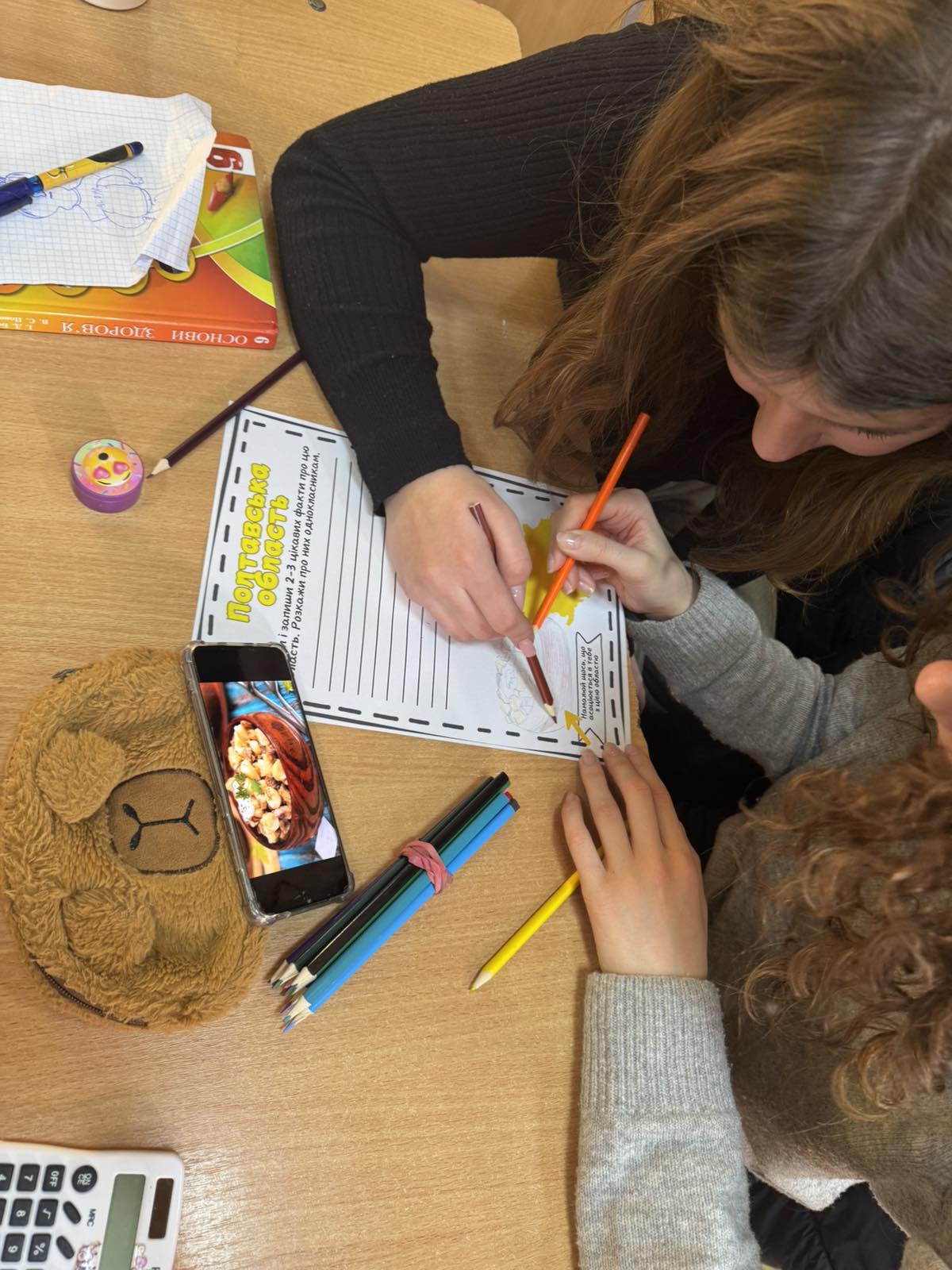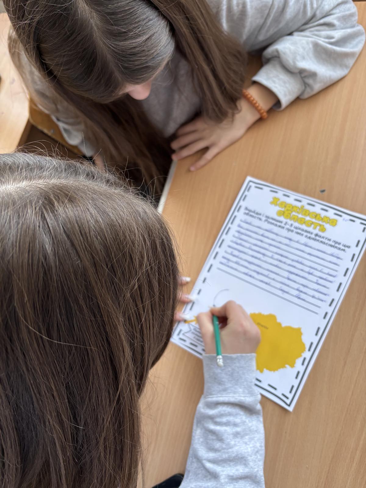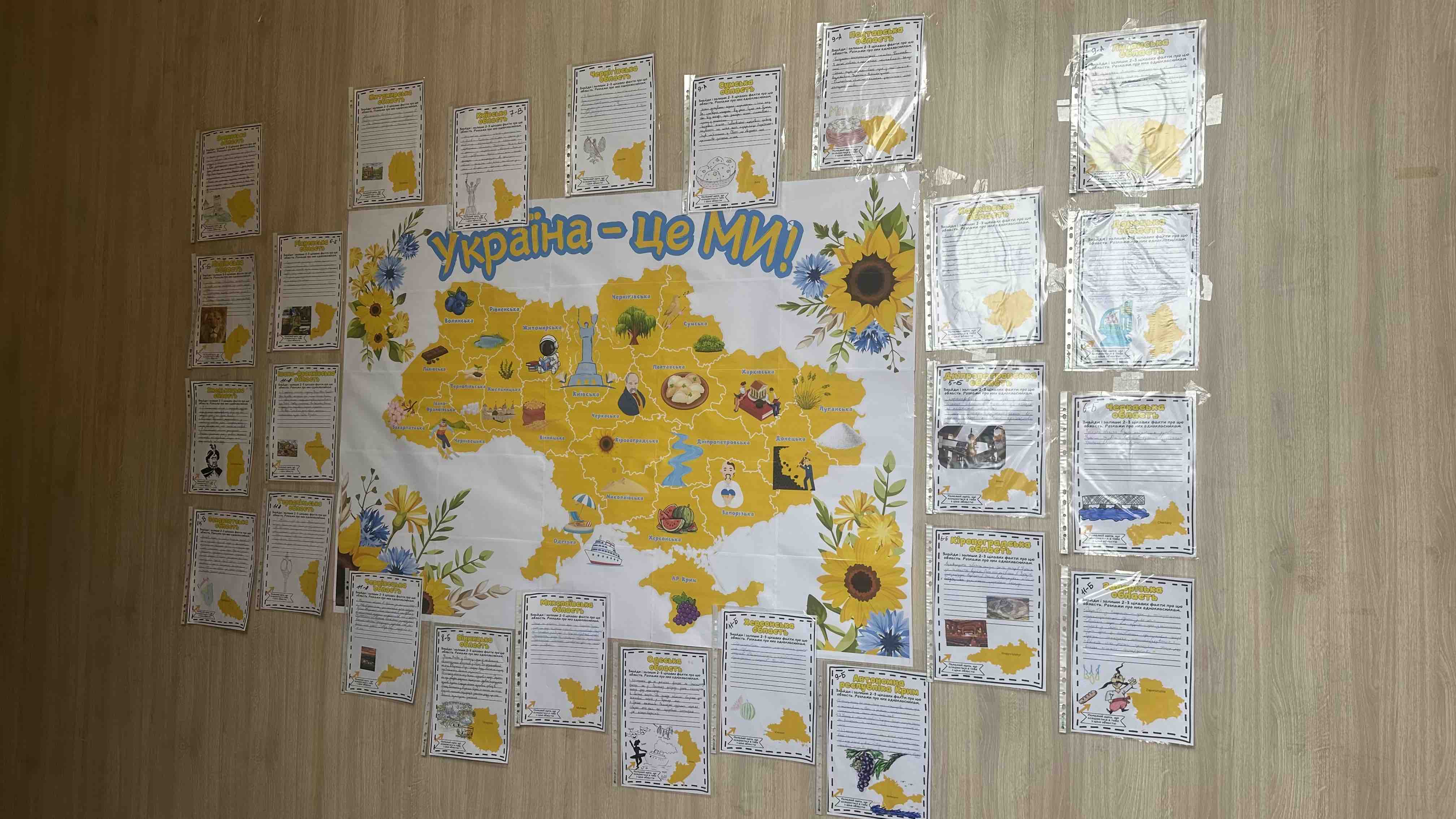 Колективна проєктна робота учнів 5–11 класів до Дня Соборності України «Україна — це ми» стала яскравим прикладом єдності, співпраці та зацікавлення історією рідної країни. У центрі композиції розміщено карту України, яку оточують індивідуальні роботи учнів, присвячені різним областям нашої держави. Кожен учасник підготував 2–3 цікаві факти про обрану область, дослідивши її історію, культуру, природу або відомих людей. Доповненням до текстів стали власноруч створені малюнки-асоціації, що передають унікальність і самобутність кожного регіону. Проєкт об’єднав учнів різного віку спільною ідеєю — показати, що Україна сильна своєю різноманітністю. Робота наочно демонструє, що соборність починається з поваги до кожного куточка нашої країни та спільної праці заради спільної мети.