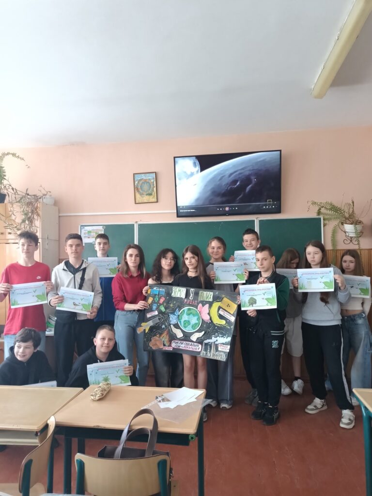 На уроці біології у 7-В класі вчителем біології Вегеш Р.Ю було проведено конкурс знавців природи, а також виготовили постер на екологічну тематику
