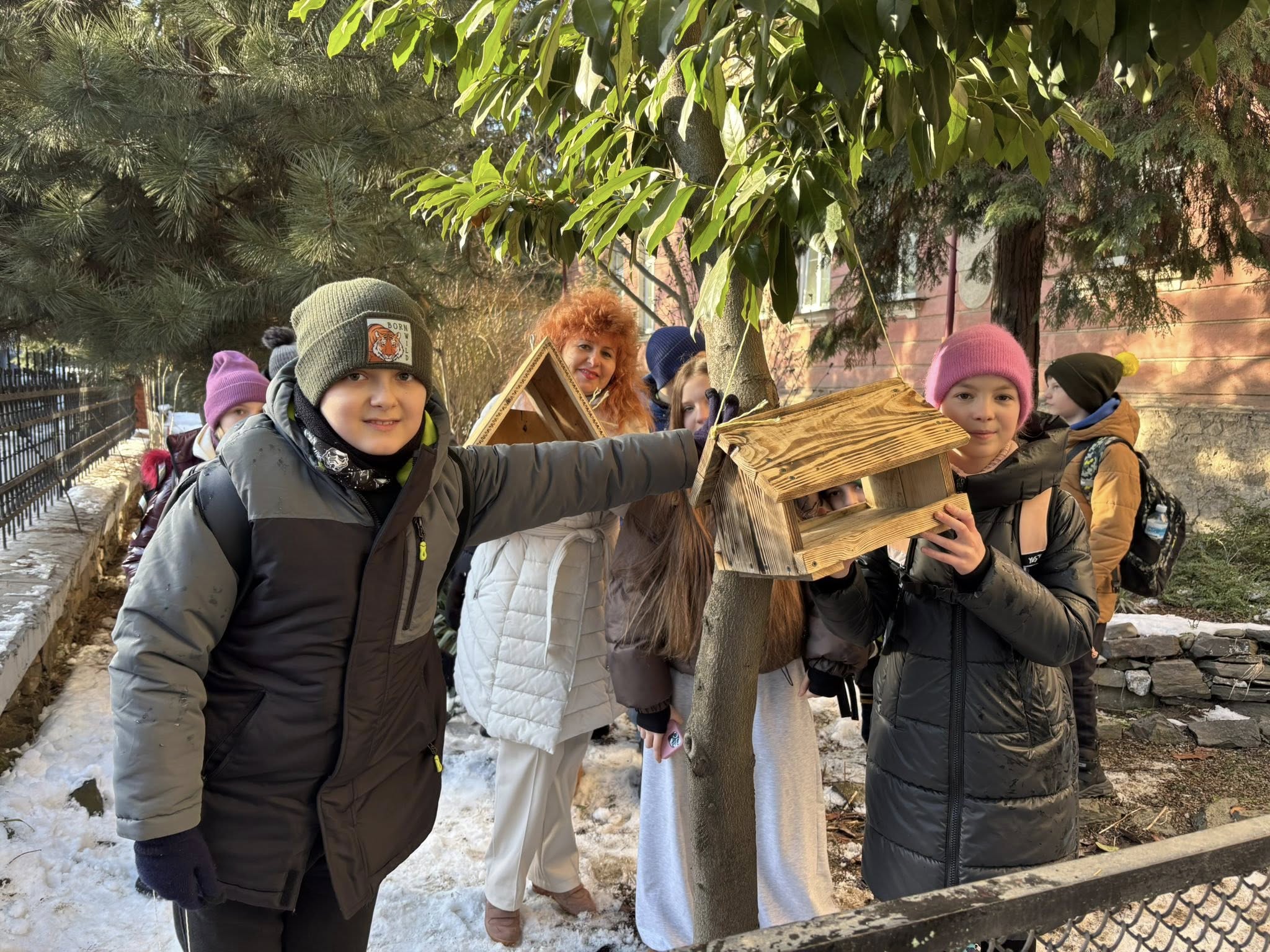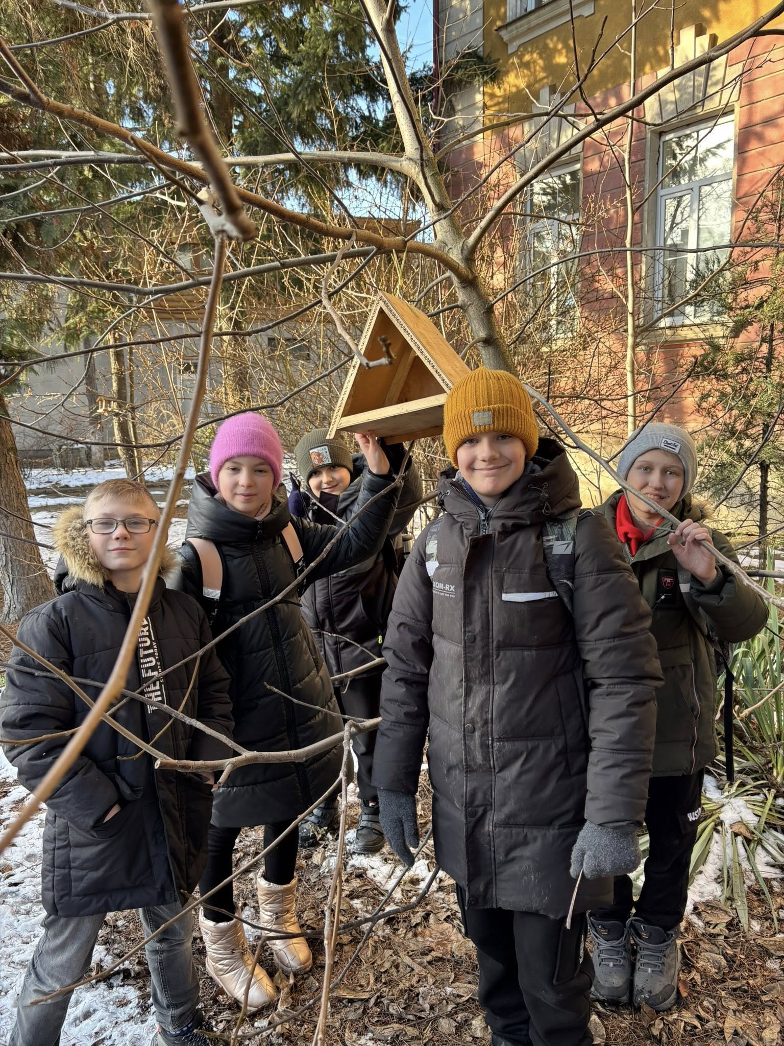 «Юні дослідники природи» (учні 6-Б класу) з вчителем біології Глаголою Н.В. долучилися до акції “Допоможи птахам взимку”. Розвішування годівниць – це важлива екологічна справа, що допомагає птахам пережити зиму. Птахи – важлива ланка природного балансу.